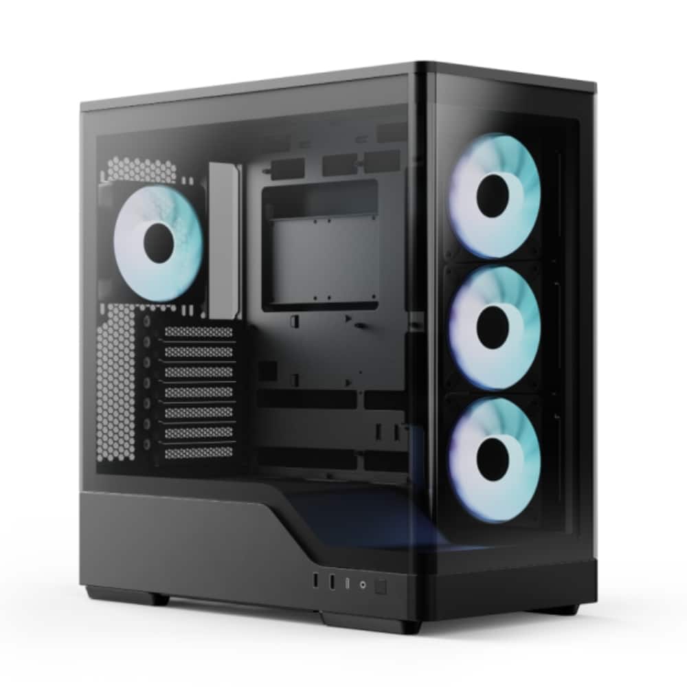 Incluye cuatro ventiladores RGB preinstalados que optimizan el flujo de aire y aportan un estilo dinámico y personalizable al equipo. Su panel lateral de cristal templado permite exhibir los componentes internos y la iluminación, creando un setup visualmente atractivo.