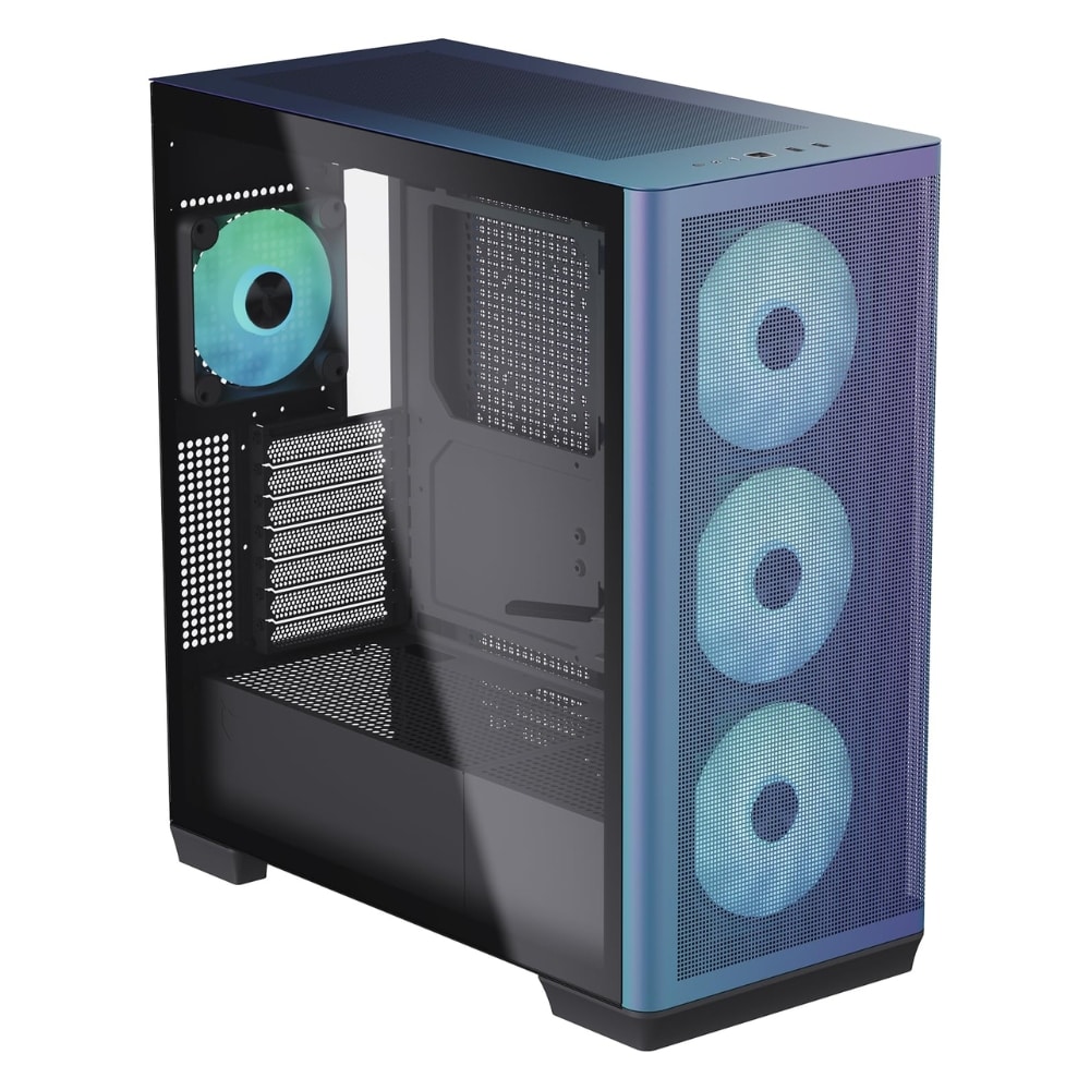 El gabinete APNX C1 Chroma Flair es un chasis ATX pensado para usuarios que buscan combinar rendimiento térmico con un diseño visual llamativo. Su estética con iluminación ARGB/Chroma aporta efectos de color personalizables que realzan cualquier setup moderno, ya sea gaming o profesional.