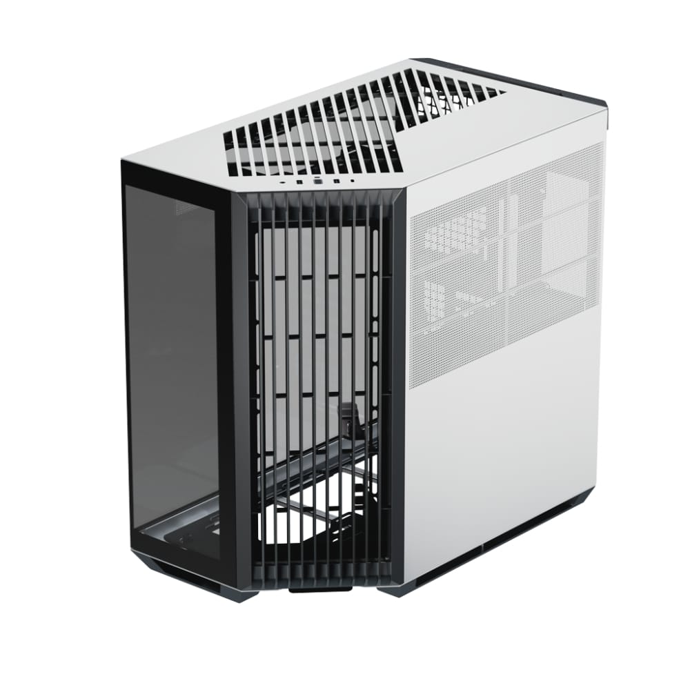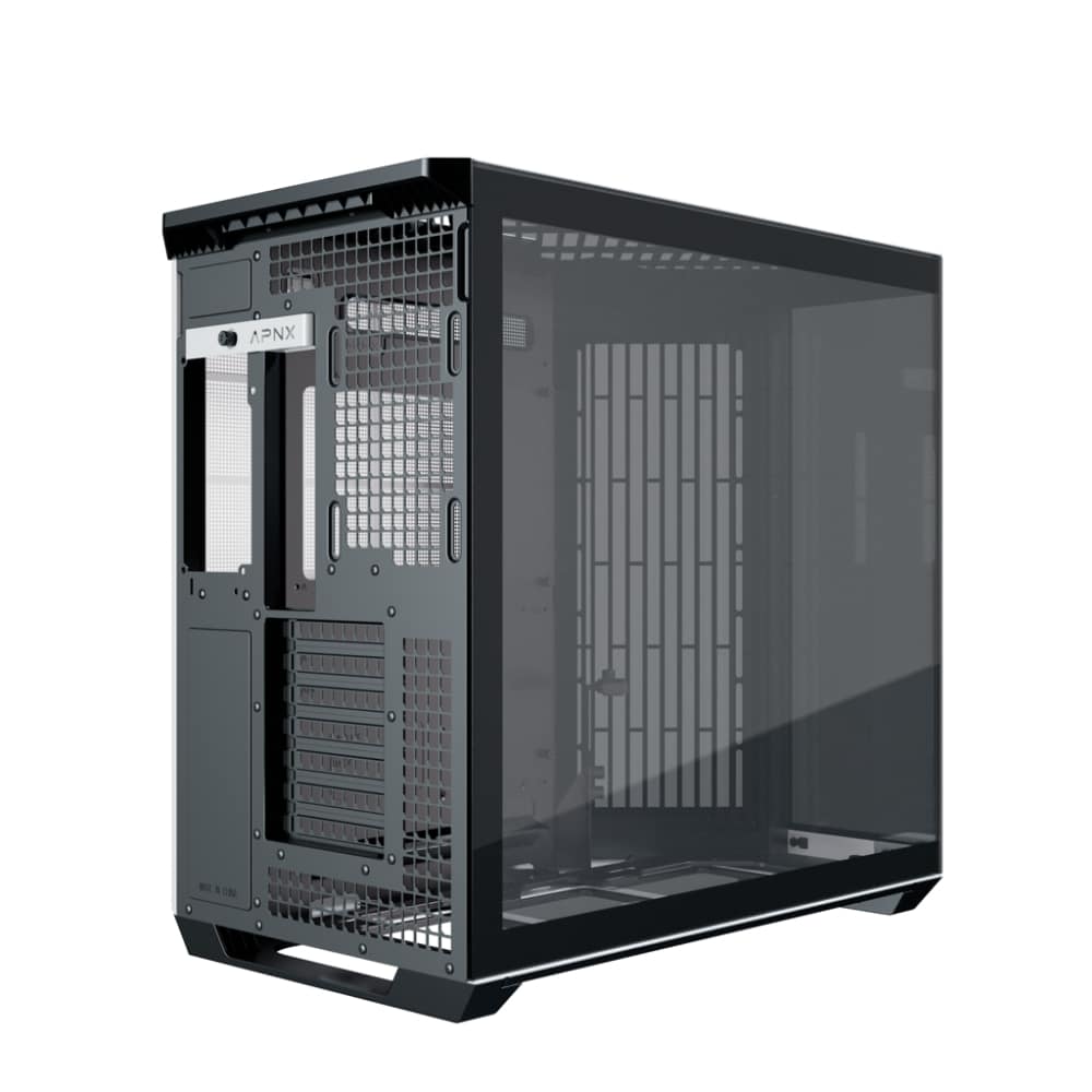El gabinete APNX V1 ATX está diseñado para ofrecer una plataforma versátil y visualmente atractiva para construir tu PC a medida. Su estilo en negro y blanco le da un toque moderno y elegante que se adapta tanto a setups de gaming como a estaciones de trabajo personalizadas.