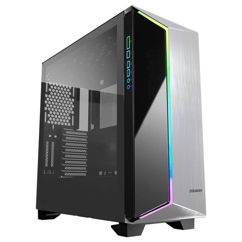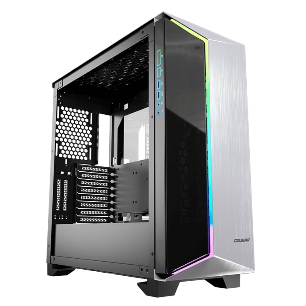 El gabinete Cougar DarkBlader-G RGB está diseñado para gamers y entusiastas que buscan una combinación de estilo, ventilación y compatibilidad. Su formato ATX permite instalar tarjetas madre de tamaño completo y componentes de alto rendimiento, como GPUs potentes, enfriamientos avanzados y múltiples unidades de almacenamiento.