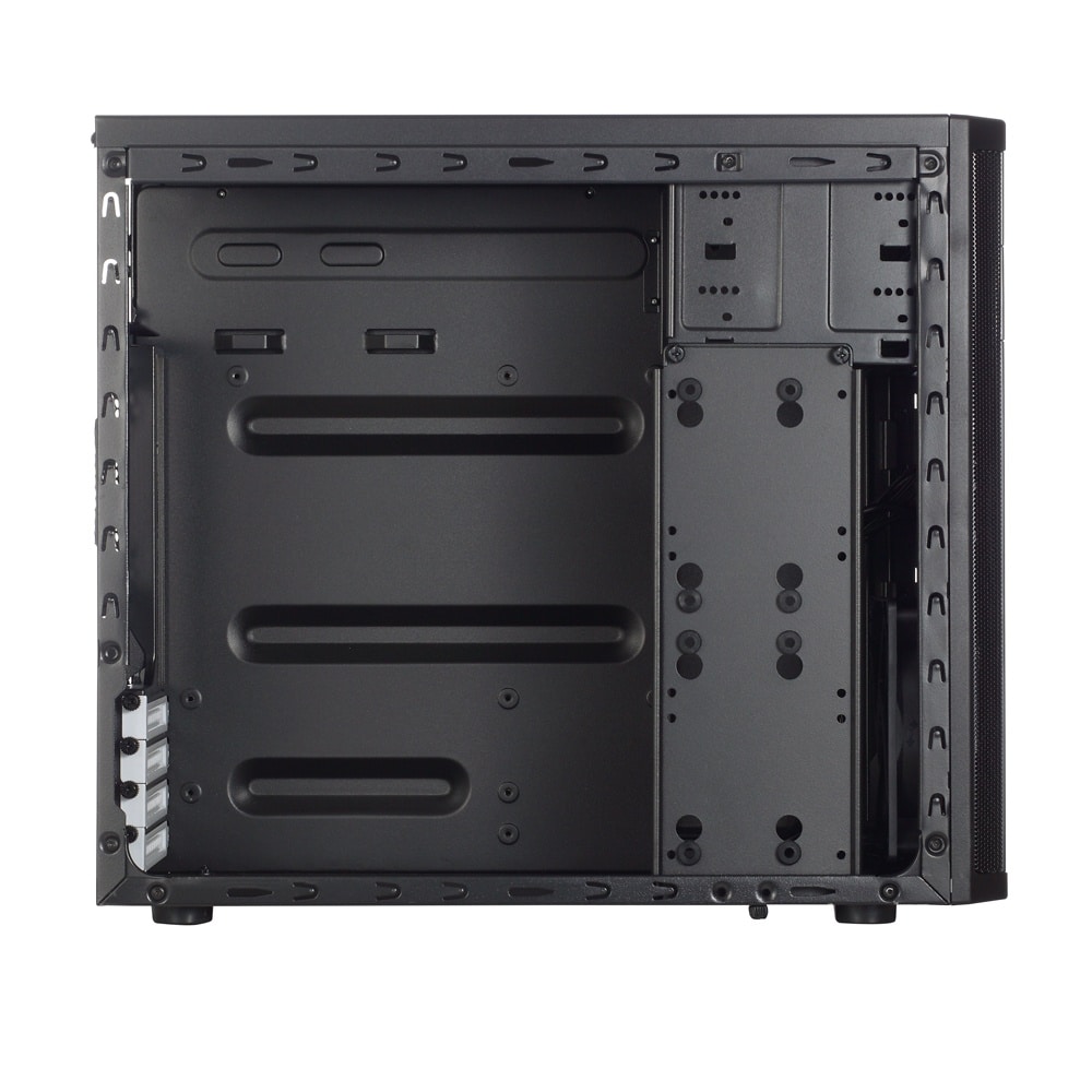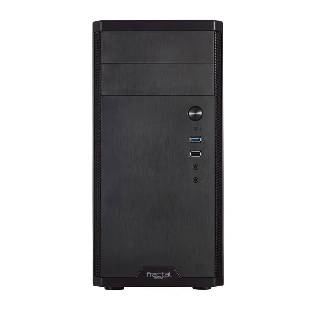 El Fractal Design Core 1100 es un gabinete Micro-ATX ideal para sistemas compactos sin comprometer rendimiento ni ventilación. Su diseño moderno en negro mate se adapta fácilmente a setups de oficina, estudio o gaming, ofreciendo un equilibrio entre tamaño reducido y funcionalidad.