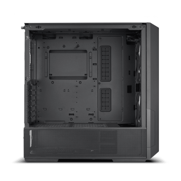 Este chasis ofrece amplio espacio interno, permitiendo la instalación de tarjetas gráficas de gran tamaño, sistemas de refrigeración por aire o líquida (incluyendo radiadores grandes), múltiples unidades de almacenamiento y una excelente gestión de cables para mantener un interior ordenado.