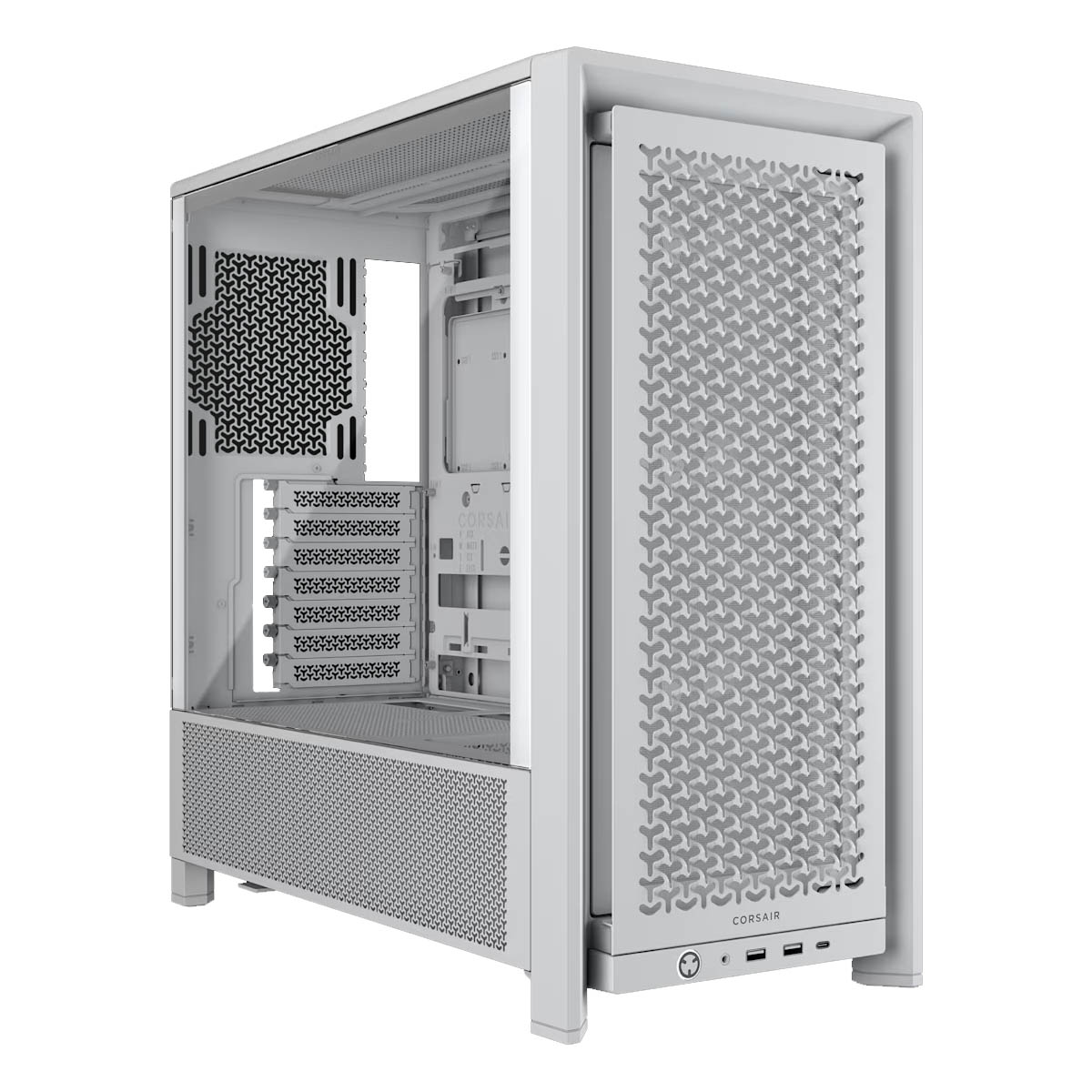 El Corsair 4000D White RS es un gabinete Mid Tower elegante y funcional, diseñado para ofrecer una construcción limpia y un flujo de aire eficiente. Su panel lateral de cristal templado permite mostrar los componentes internos con claridad, ideal para setups blancos o builds con iluminación RGB.