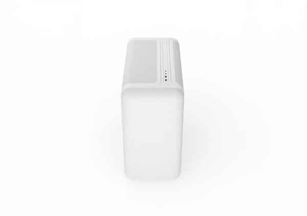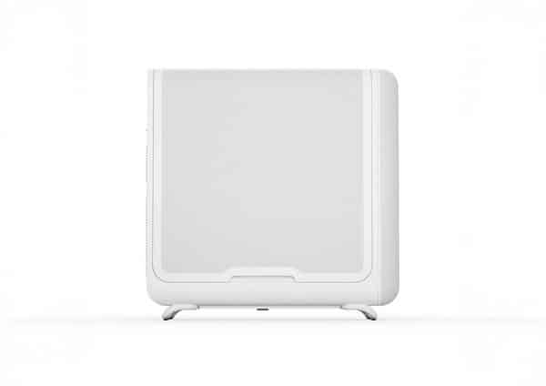 + EnvíoGabinete de alto flujo de aire con panel lateral de malla curva y estética minimalista en color blanco.