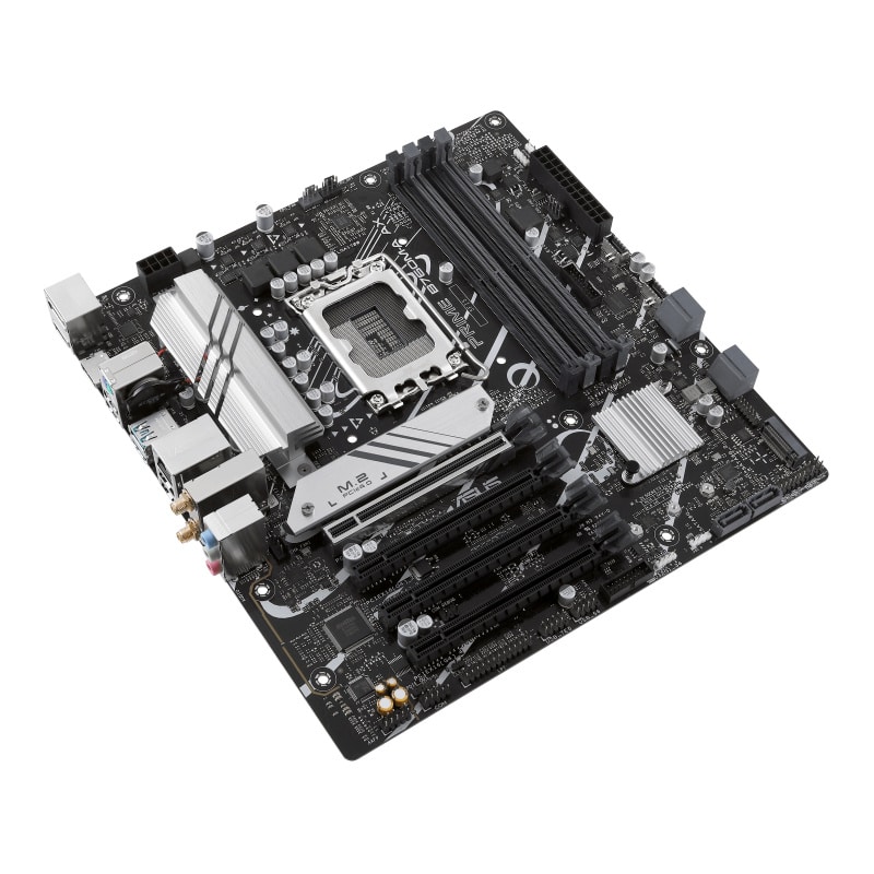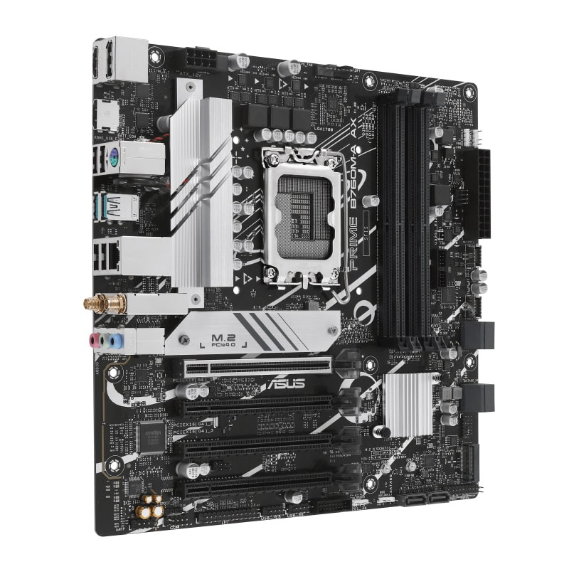 La ASUS PRIME B760M-A AX es una motherboard Micro ATX diseñada para armar PCs modernas con procesadores Intel de 12ª y 13ª generación (socket LGA1700). Orientada a usuarios que buscan estabilidad, rendimiento equilibrado y conectividad completa, esta placa base combina capacidades avanzadas con facilidad de uso.