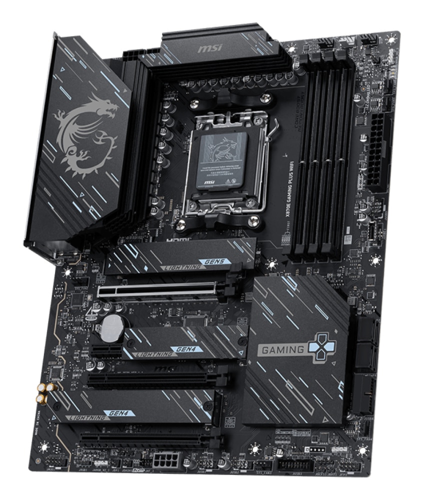 La MSI X870E Gaming Plus Wi-Fi es una motherboard ATX diseñada para gamers y usuarios que buscan alto rendimiento, conectividad moderna y compatibilidad con hardware de última generación. Con socket AM5, esta placa base soporta los procesadores AMD Ryzen más recientes, ofreciendo potencia y estabilidad para juegos exigentes y tareas intensivas.