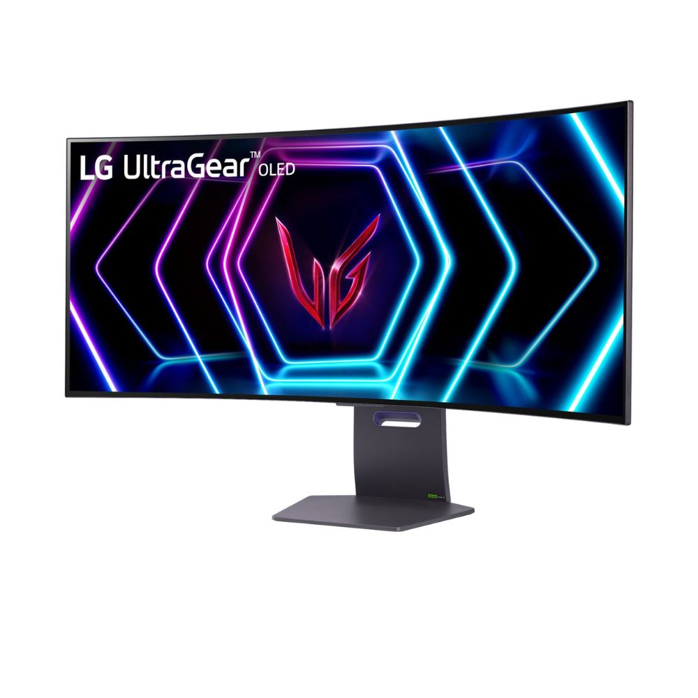 Pantalla OLED LG de 39″ con formato ultra ancho 21:9, resolución WQHD, tasa de refresco de 240 Hz, tiempo de respuesta 0.03 ms, curvatura 800R, compatibilidad con FreeSync Pro y G‑Sync.
