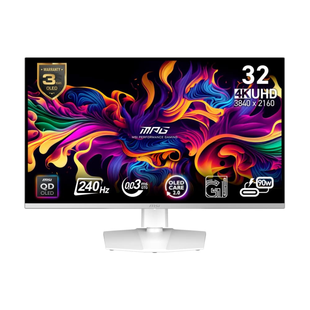 MONITOR OLED MSI 32″ (MPG 321URXW QD-OLED) 3840X2160 PLANO 240HZ 1*DP, 2*HDMI 1*USB C, G-SYNC, BLANCO
