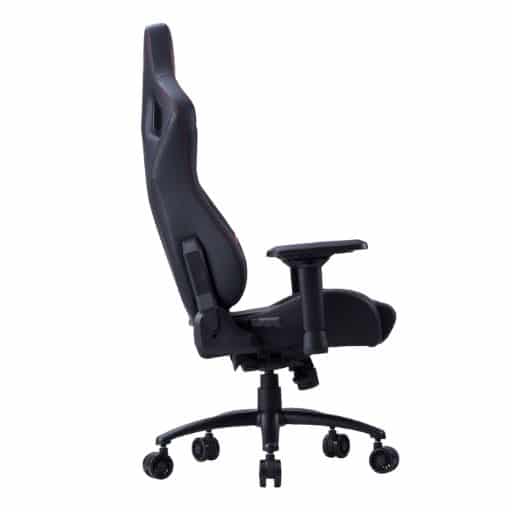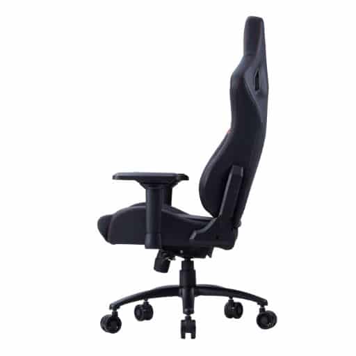 Tapizada en polipiel de alta calidad en negro con detalles rojos, combina resistencia con un estilo gamer llamativo que realza cualquier setup. La forma y acolchado de sus cojines proporcionan un confort superior sin sacrificar la firmeza necesaria para sesiones prolongadas.