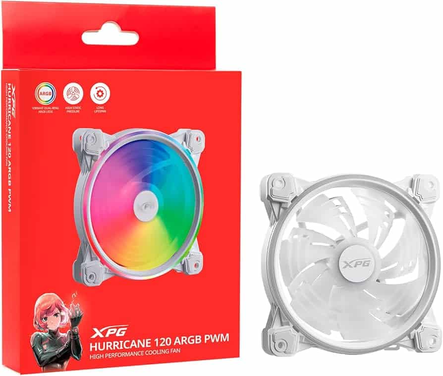 El ventilador ADATA XPG Hurricane de 120 mm está diseñado para ofrecer un excelente equilibrio entre rendimiento, control y estilo. Incorpora iluminación ARGB para personalizar la apariencia del equipo y compatibilidad con control PWM, permitiendo ajustar automáticamente la velocidad según la temperatura del sistema.